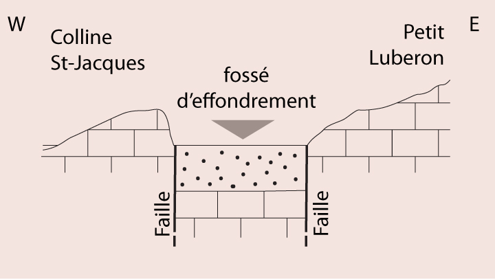 Schéma du fossé d’effondrement entre colline St-Jacques et Luberon