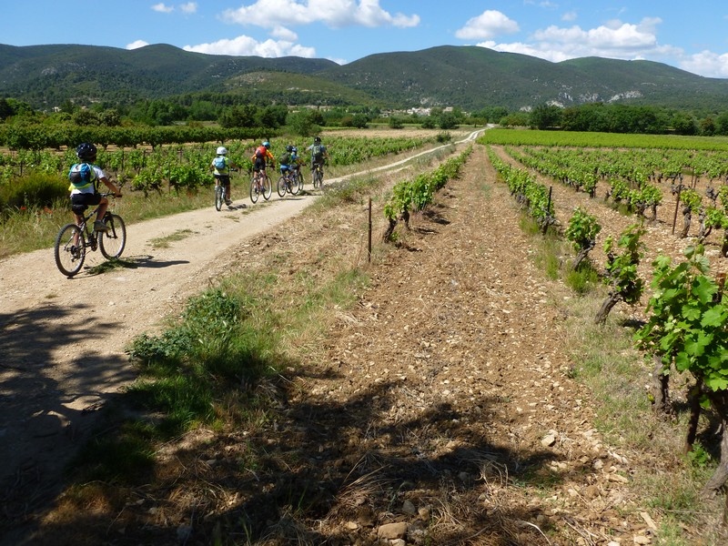 Elèves de Cucuron à vélo circulant entre les vignes au pied du Luberon (Christian Castro)