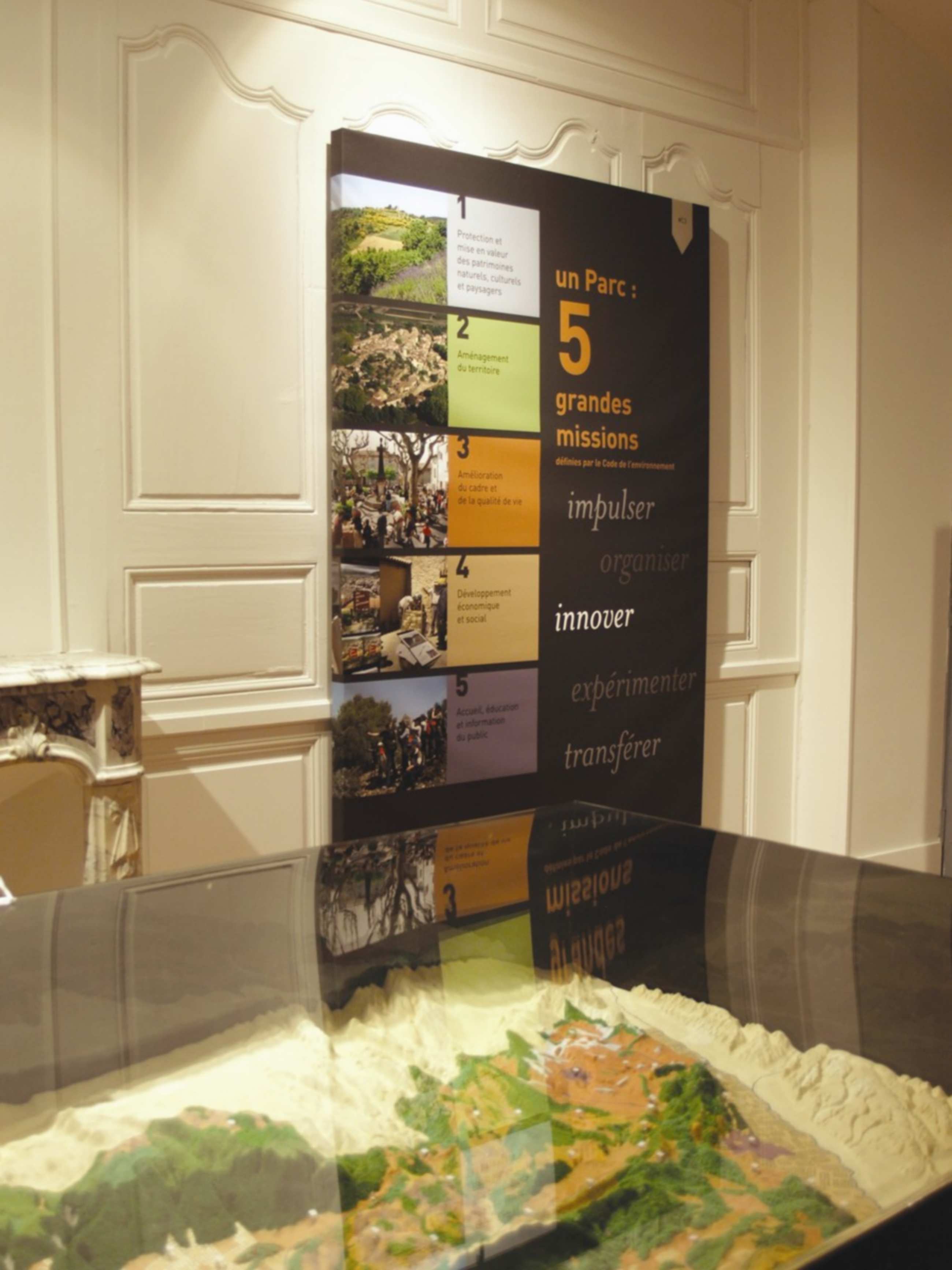 Sophie BILLAUD 2017-03-21T16:54:24+01:00Les missions des Parcs dans la salle institutionnelle de l'exposition permanente de la Maison du Parc (PNRL Matthieu CAMPS)